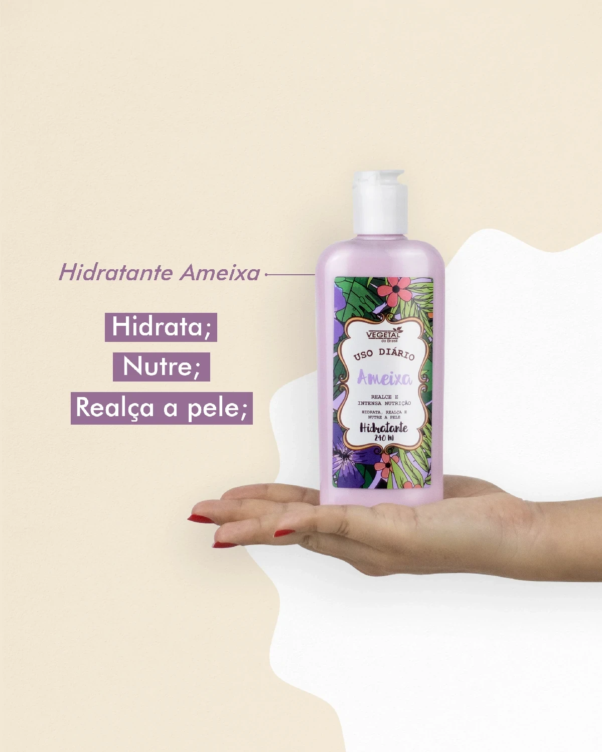 Rico em óleos naturais, manteigas e vitaminas, o hidratante diário vegetal do Brasil é ideal para as peles expostas ás agressões do meio ambiente como vento, ar seco e poluição, pois restaura e protege, deixando sua pele perfumada e super hidratada.